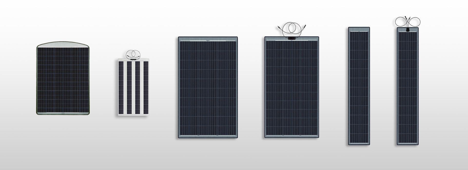 Composite Module eignen sich ideal für Wohnmobile, Camper, Boote, Zelte und Elektrofahrzeuge wie Golfcarts - Bereiche, in denen herkömmliche Glasmodule wegen der geringen Traglast der Unterkonstruktion nicht in Frage kommen.
